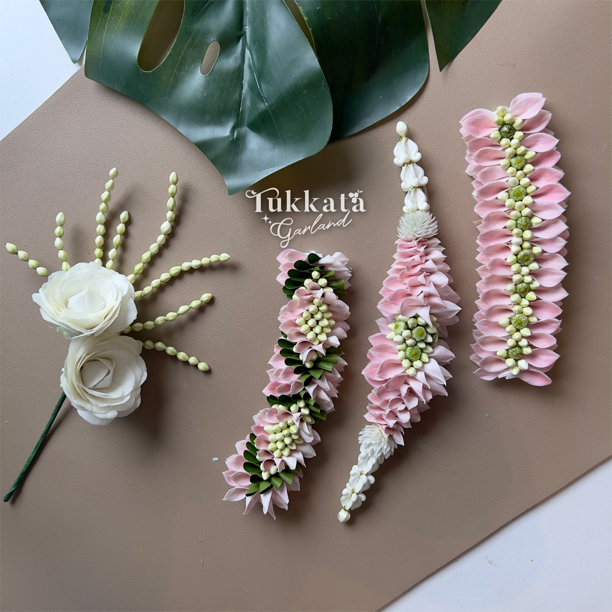 Explore beyond just ready-made fresh flower creations like vases and garlands; delve into our exquisite Fresh Flower Ornaments and Components, perfect for customization, especially catering to our organizer customers. Incorporating Thai handcrafted work elevates the theme, offering a unique touch that real flowers alone cannot achieve.